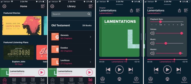 In addition, it features an incredibly usable interface. You can customize your volumes and playback speeds, and set a listening queue. And if you’re into Bible reading (or here: listening) plans, you can access their suggested plans and or thematic playlists.