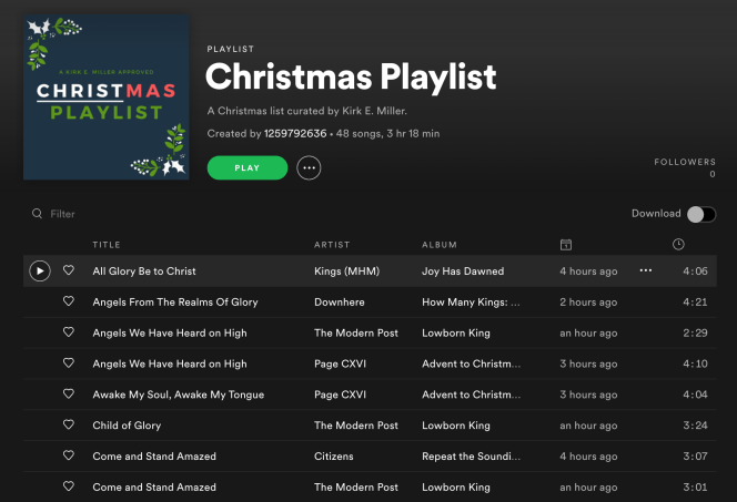 So… without further ado, here is your Kirk Miller approved Spotify Christmas playlist.