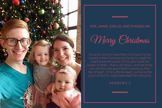 The most important event for our family from this past year was the arrival of Evangeline on March 26th. Her name comes from the Latin word for “Gospel,” which refers to the good news about what Christ has done to save his people from their sins through his death on the cross. For her middle name, Alice, she is named after her now late maternal great-grandmother.