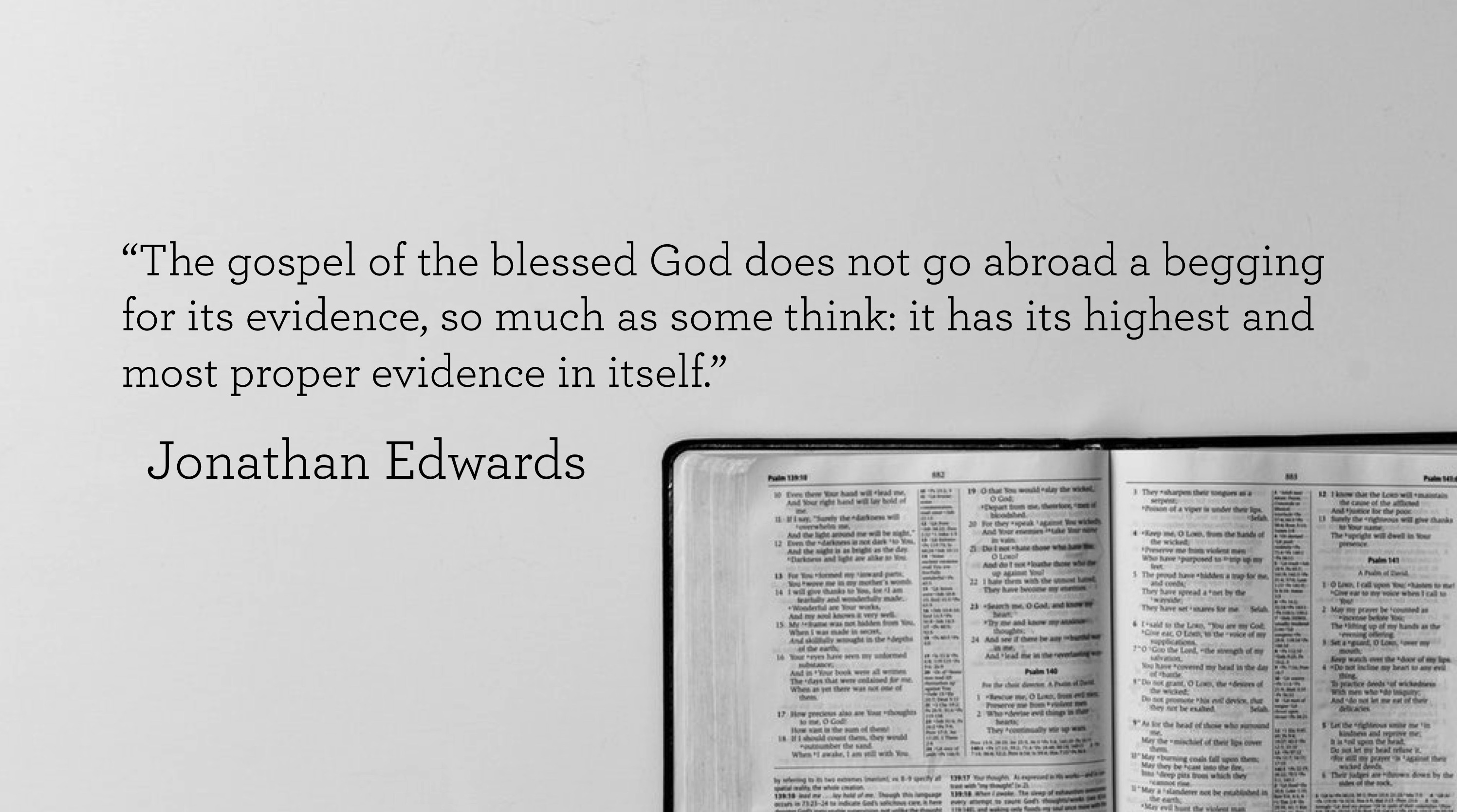 In part III, section V. of Jonathan Edwards’ Religious Affections, Edward’s helpfully explains the Holy Spirit’s inward testimony to scripture’s divine origin. In short, Edwards argues that the gospel itself is directly “self-evidencing.” Namely, that the Spirit enables individuals to apprehend and taste the excellencies of God in the Gospel, which, when perceived, are direct evidence of its divine origin and thereby grants sure conviction of its truthfulness.